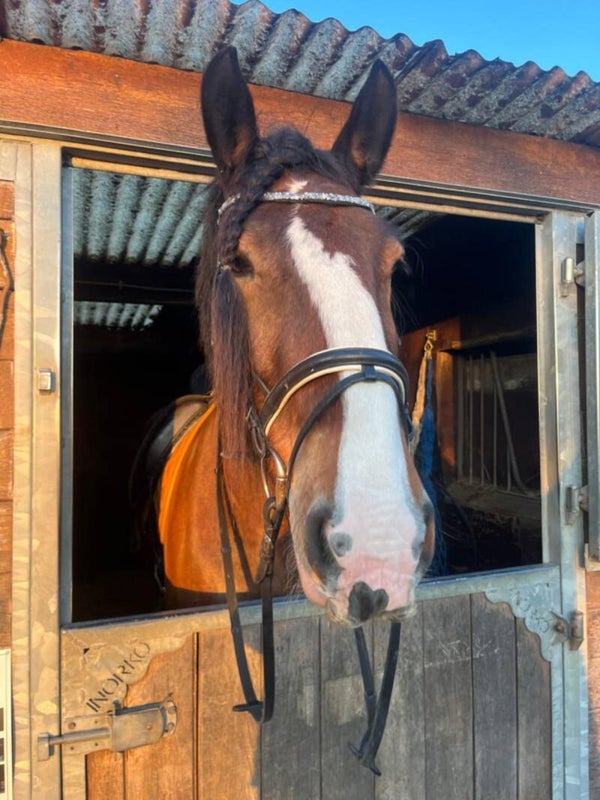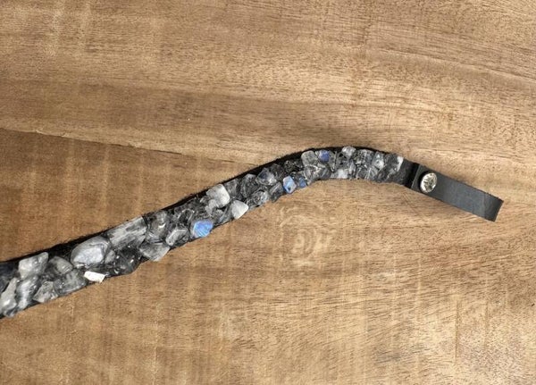 Laat jouw paard stralen met een prachtige unieke door Zen Steen ontworpen handgemaakte frontriem van leer met Labradoriet steentjes.