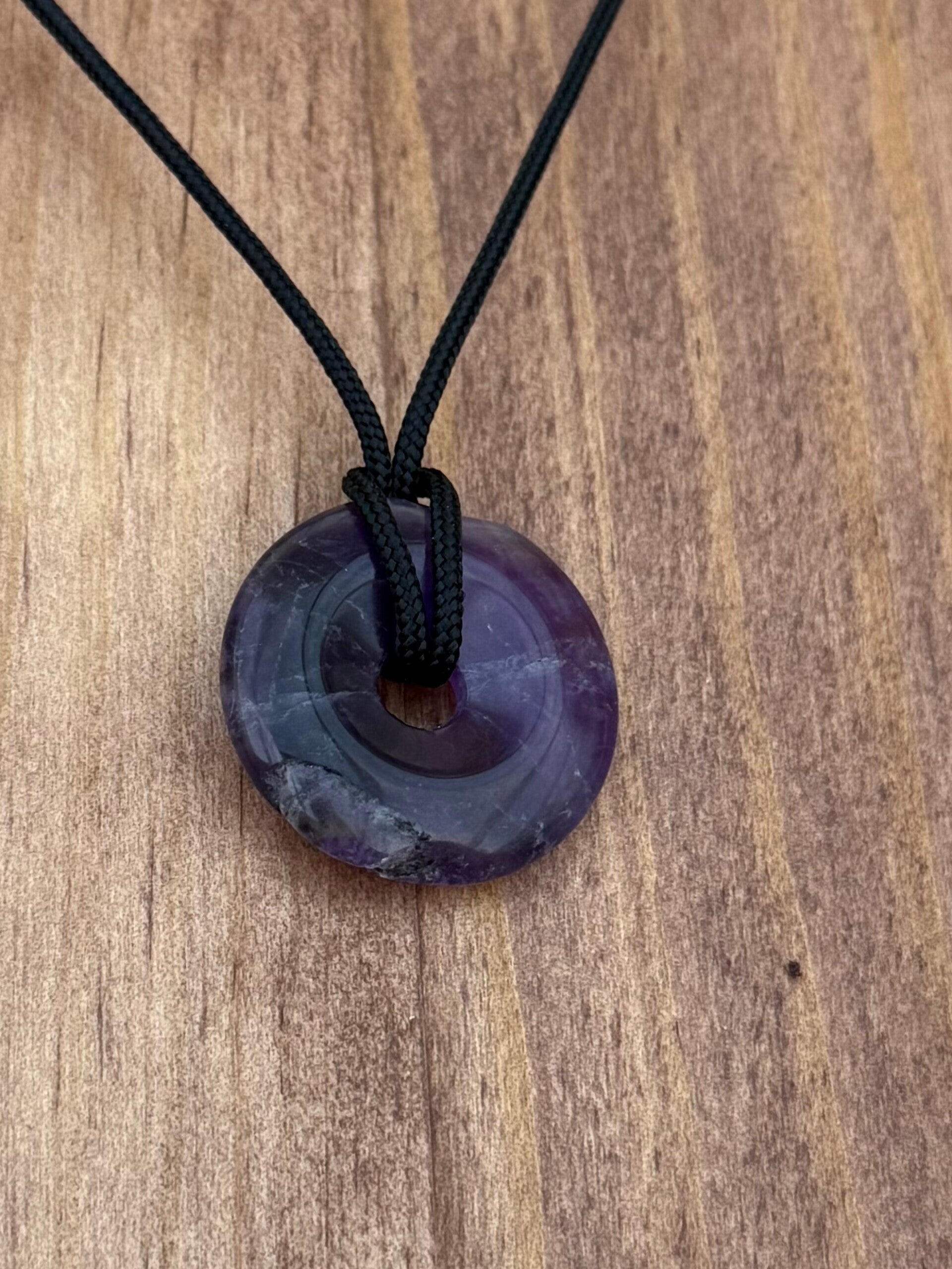 Deze mooie Amethist donut hanger heeft een echte kneus waarvan onbekend is hoe deze is opgelopen, een steen met een rugzakje maar misschien wel een vriend voor het leven!